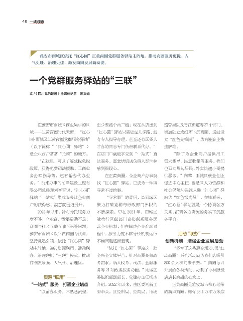 雅安市雨城区以正黄商圈为试点, 程中,服务力度不够导致机制运行 活动“联办”——