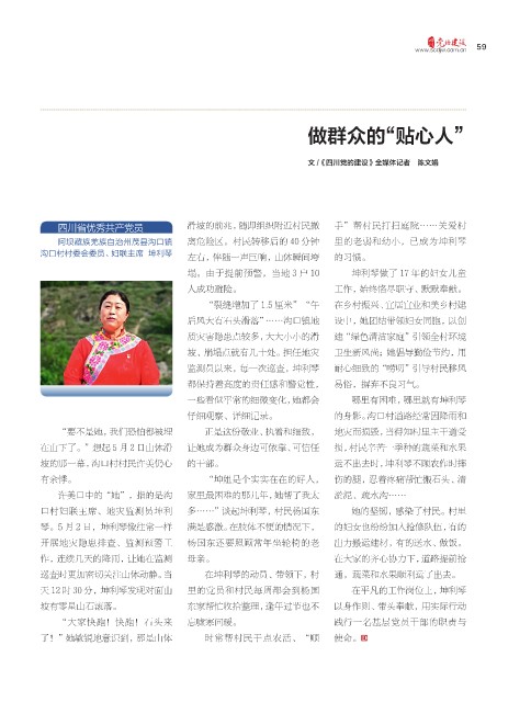 口村妇联主席、地灾监测员坤利 多……”谈起坤利琴,村民杨国东 她的坚韧,感染了村民。村里