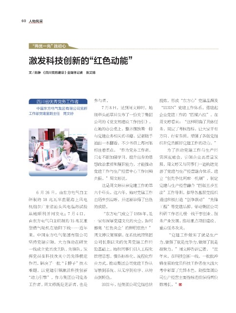 四川省优秀党务工作者 参与者。 提炼,形成“东方心”党建品牌及