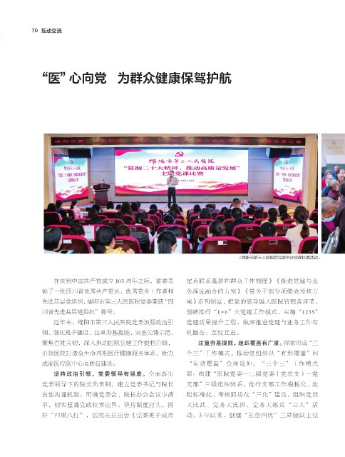 近年来,绵阳市第三人民医院党委加强政治引 党建质量提升工程,纵深推进党建与业务工作有