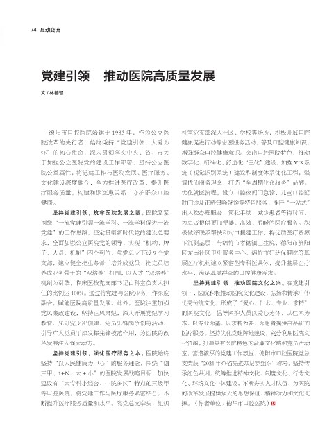 断提升医疗服务质量和水平。院党总支牵头,组织 撑。(作者单位 / 德阳市口腔医院)