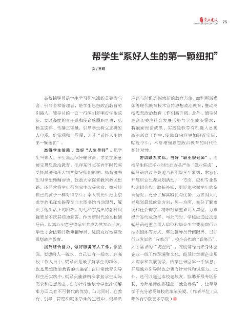 引路人。辅导员的一言一行深刻影响着学生成 校思想政治教育工作创新升级。此外,辅导员