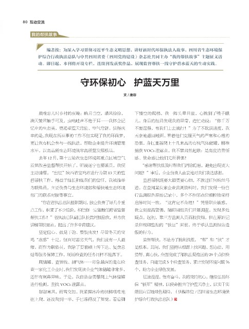 编者按:为深入学习贯彻习近平生态文明思想,讲好新时代环保执法人故事,四川省生态环境保
