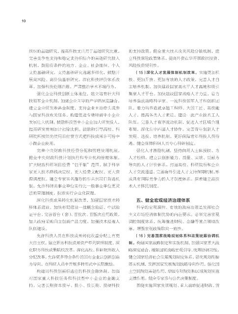 深化科技成果转化机制改革,加强国家技术转 五、健全宏观经济治理体系