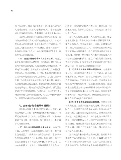 部地区加快崛起、东部地区加快推进现代化的制度和 (21)巩固和完善农村基本经营制度。有序推进