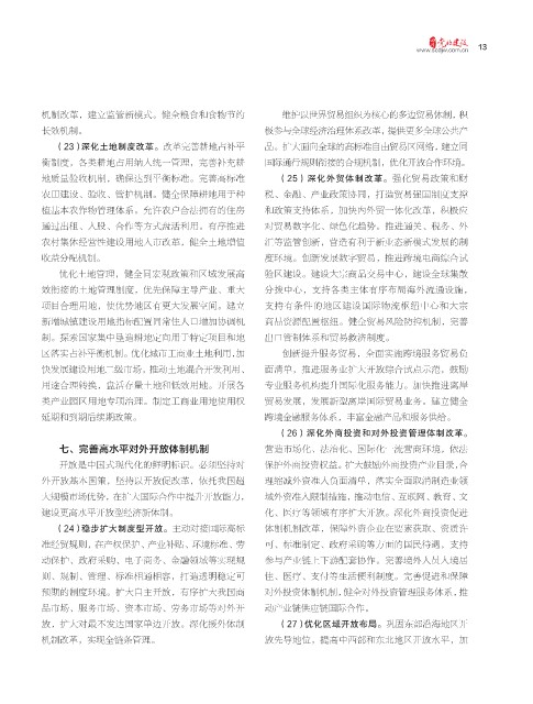 (23)深化土地制度改革。改革完善耕地占补平 品。扩大面向全球的高标准自由贸易区网络,建立同