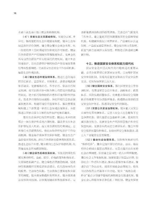 (49)健全绿色低碳发展机制。实施支持绿色低 社会治理制度。探索建立全国统一的人口管理制度。