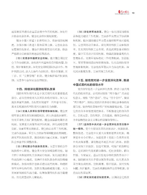 (54)完善人民军队领导管理体制机制。健全贯 党的自我革命制度规范体系,不断推进党的自我净