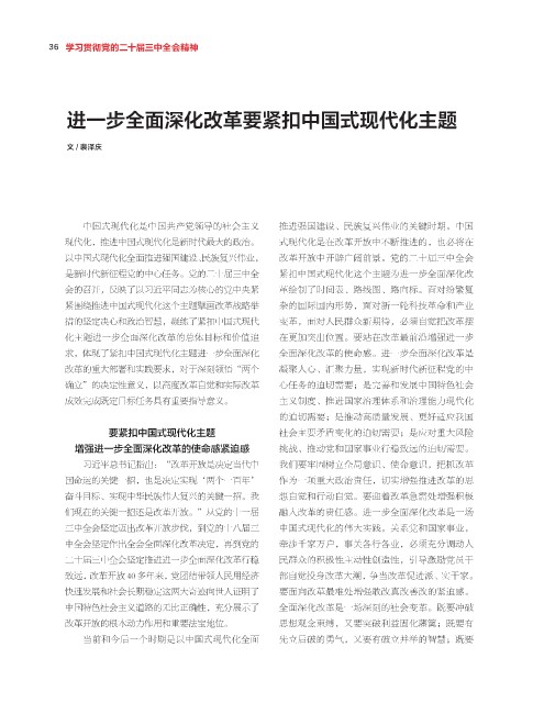 求,体现了紧扣中国式现代化主题进一步全面深化 全面深化改革的使命感。进一步全面深化改革是