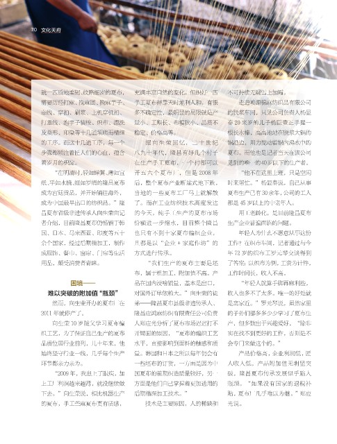 “2009 年,我患上了眼疾,加 国夏布的前期织造质量较好,另一 破,隆昌夏布传承发展似乎陷入