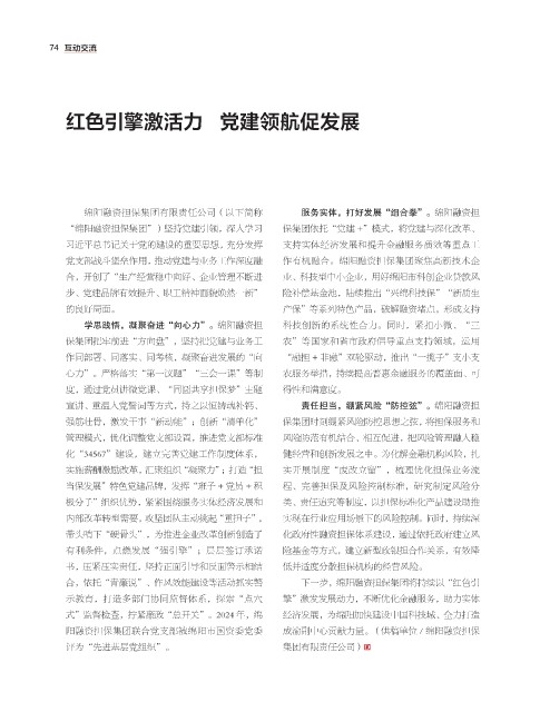 “绵阳融资担保集团”)坚持党建引领,深入学习 保集团依托“党建 +”模式,将党建与深化改革、