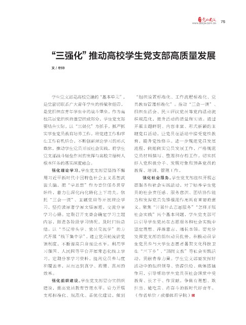 强化组织建设。 学生党支部要夯实组织 教育、长才干、作贡献,争做有理想、敢