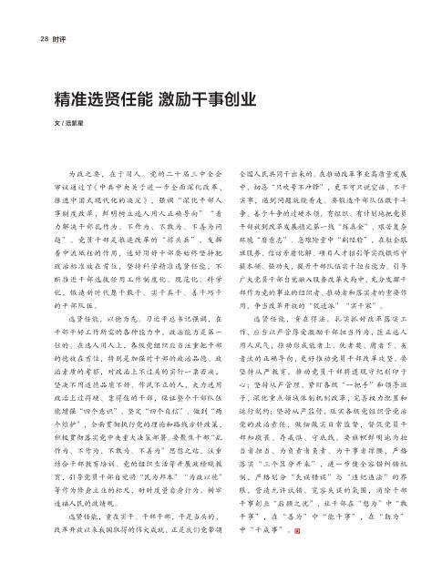 选贤任能,以德为先。习近平总书记强调,在 选贤任能,贵在得法。扎实抓好改革落实工