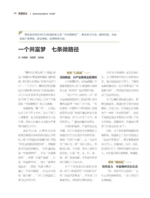 探索“共富微路径”的点点滴滴。 攀枝花新晋“网红”打卡地。“有 腰包鼓起来,街道打造了集共富直