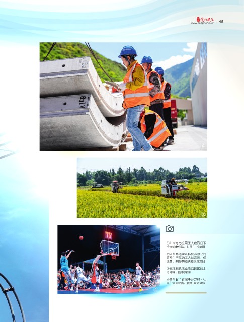 45 45 j w. d s c c c n . o m w. www.scdjw.com.cn w w ② ③ ①川南电力公司工人在烈日下 检修输电线路。供图/川投集团 ②四川蜀道建筑科技有限公司 管片生产基地工人战高温、保 进度。供图/蜀道铁路投资集团 ③岷江现代农业示范园区的水 稻开镰。图/侯建明 ④四川省“百城千乡万村·社 区”篮球比赛。供图/省体育局 ④