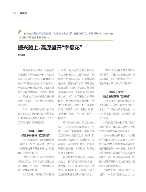 公安为人民”的铮铮誓言。 结对帮扶河垭村、沙江村的过 如何让定点帮扶村实现“造血”
