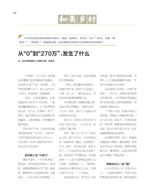 村民连续 4 年参与集体经济分红。 的“家庭农场”概念,让他找到了 构建起种养循环、粮饲兼顾、畜种