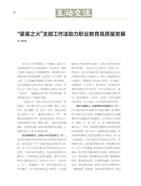 “星星之火”支部工作法立足专业建设、课 对标先进、学习先进、争当先进的浓厚氛围。