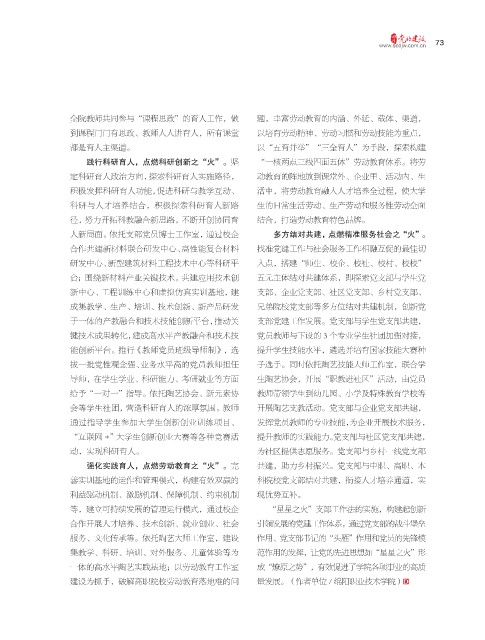 于一体的产教融合和技术技能创新平台,推动关 支部党建工作发展。党支部与学生党支部共建,