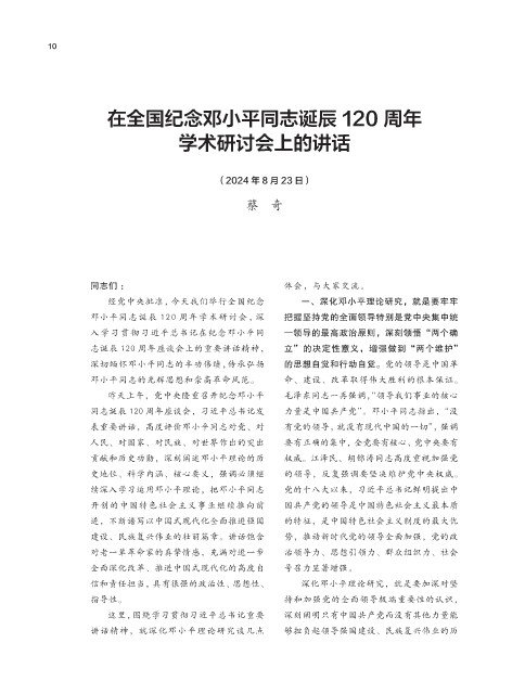 邓小平同志诞辰 120 周年学术研讨会,深 把握坚持党的全面领导特别是党中央集中统
