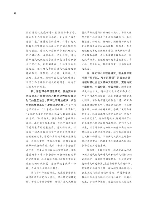 全面深化改革向广度和深度进军。 邓小平同 有高度的精神文明”。他反复强调要一手抓物