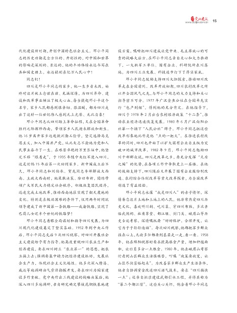 川现代化建设奠定了坚实基础。1952 年到中央工作 它为子子孙孙造福”。每次回川视察,他都把家乡群众