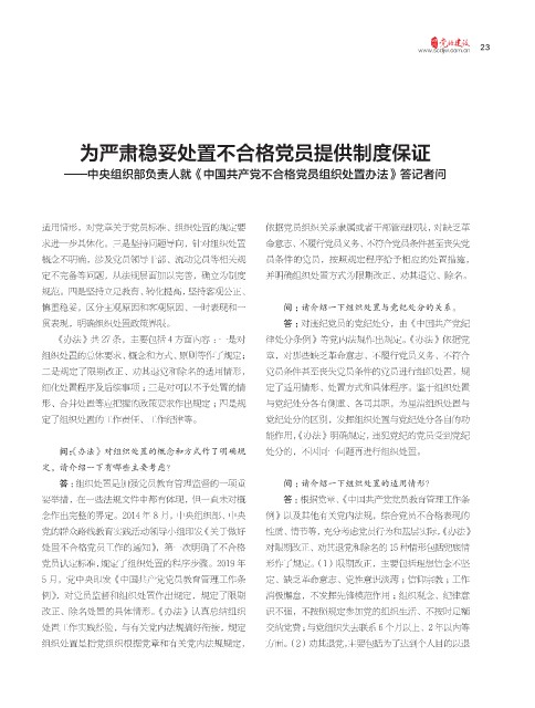 —中央组织部负责人就《中国共产党不合格党员组织处置办法》答记者问