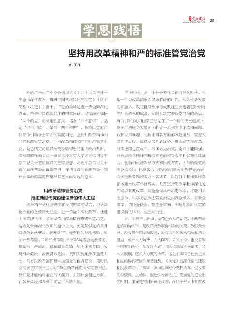 用改革精神管党治党 的建设制度改革,健全全面从严治党体系,才能用系