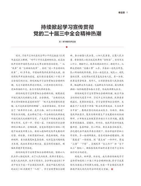 依靠人民而改革,改革才有动力。全会审议通过的《中 宣传贯彻党的二十届三中全会精神热潮,将学习成果