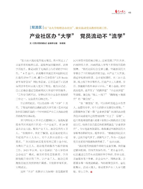 | 双流区 | 以“办大学的理念办社区”,做实流动党员教育培训工作。
