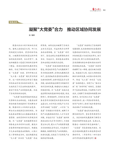 题。而“大党委”机制能够有效引 席会议的方式引导不同部门、不同经 的组织保障和制度支撑。笔者认为,