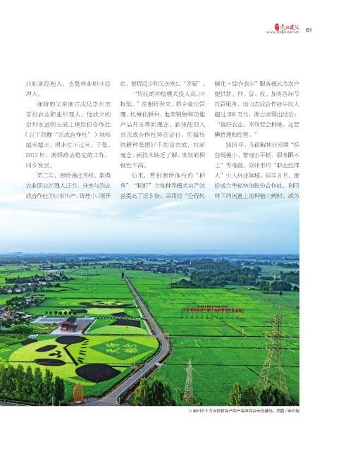 谢娇的父亲谢志成是崇州市 报低。”在谢娇看来,将企业化管 托管服务,助力志成合作社年收入