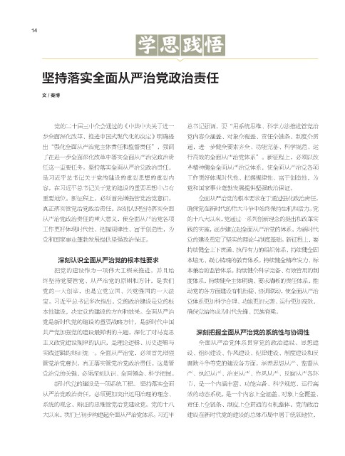 任这一重要任务。坚持落实全面从严治党政治责任, 革精神健全全面从严治党体系,使全面从严治党各项