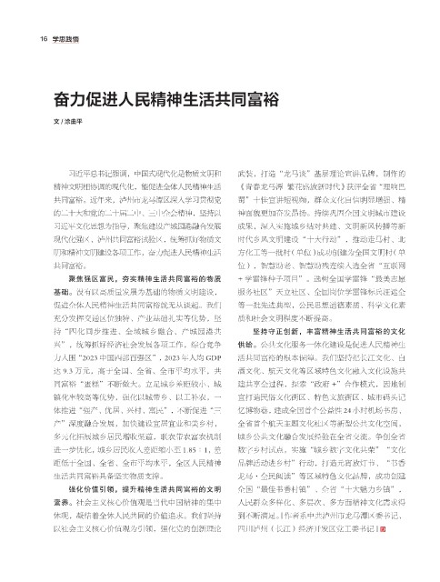 现代化强区、泸州共同富裕试验区,统筹抓好物质文 时代乡风文明建设“十大行动”,推动走马村、北