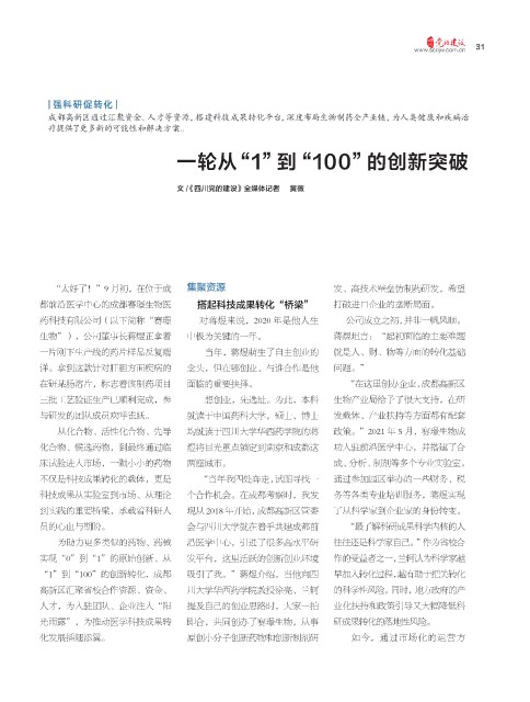 到实践的重要桥梁,承载着科研人 现从 2018 年开始,成都高新区管委 了从科学家到企业家的身份转变。