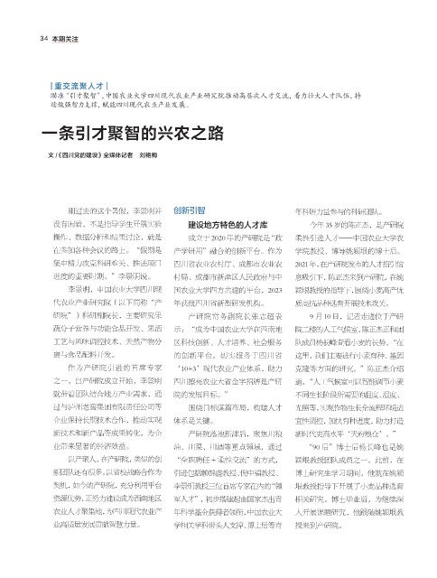 农业人才聚集地,为四川现代农业产 年科学基金获得者领衔,中国农业大 入开展课题研究,他跟随姚颖垠教