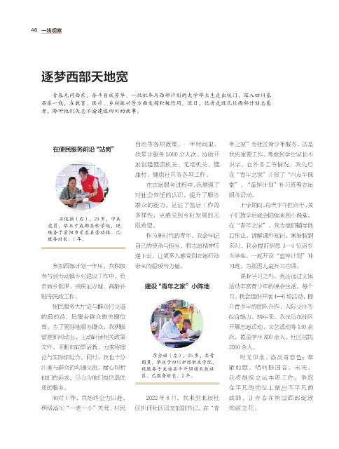 青春无问西东,奋斗自成芳华。一批批参与西部计划的大学毕业生走出校门,深入四川基