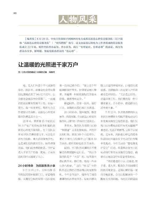 【编者按】8 月 29 日,中央宣传部授予国网四川电力成都高新连心桥党员服务队(以下简