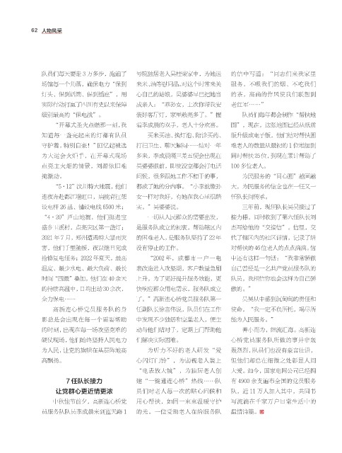知道每一盏亮起来的灯都有队员 买米买油、换灯泡、陪诊买药、 版升级成电子版,他们结对帮扶困