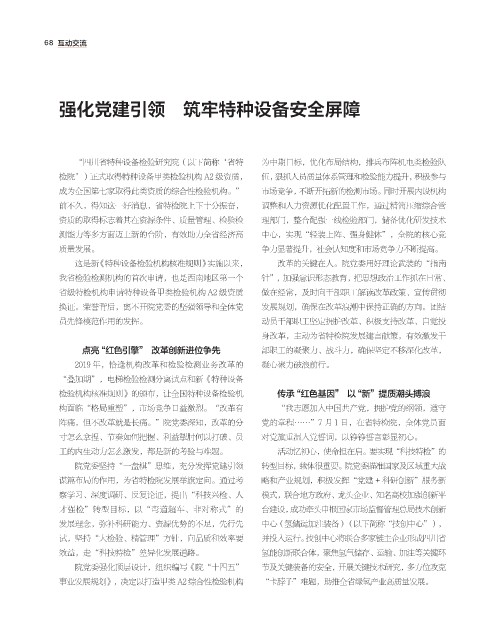 谋篇布局的作用,为省特检院发展举旗定向。通过考 略和产业规划,积极发挥“党建 + 科研创新”服务新