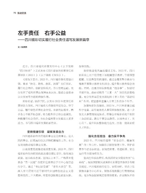 “四川福彩”)正式发布《四川省福利彩票责任彩 持续推进党风廉政建设工作。2023 年,四川