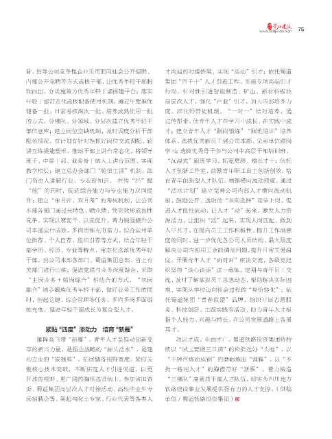 颖而出,分类施策为优秀年轻干部搭建平台;落实 行动,针对性引进智能制造、矿山、新材料板块