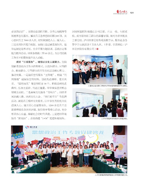 心慰问员工 7000 余人次,切实做到稳人心、暖人心。 工委党校、泸州市委党校等现场教学点,服务社会各