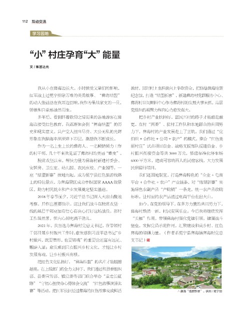 2021 年,我当选为彝海村党总支书记,在带领村 堡垒,发挥党员示范作用,汇聚建设和美乡村、红色