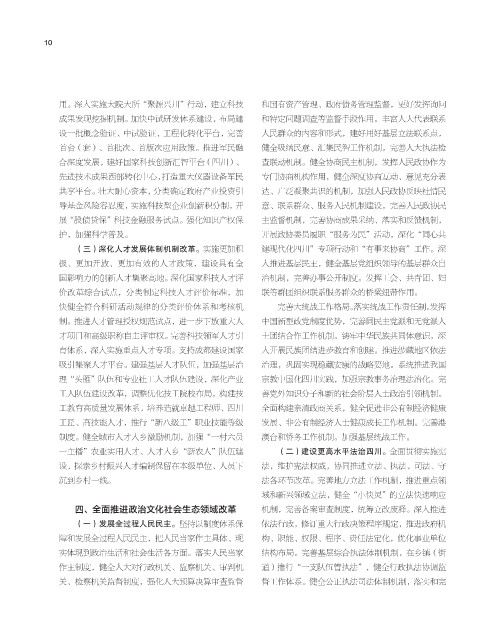 (三)深化人才发展体制机制改革。实施更加积 建现代化四川”专项行动和“有事来协商”工作。深