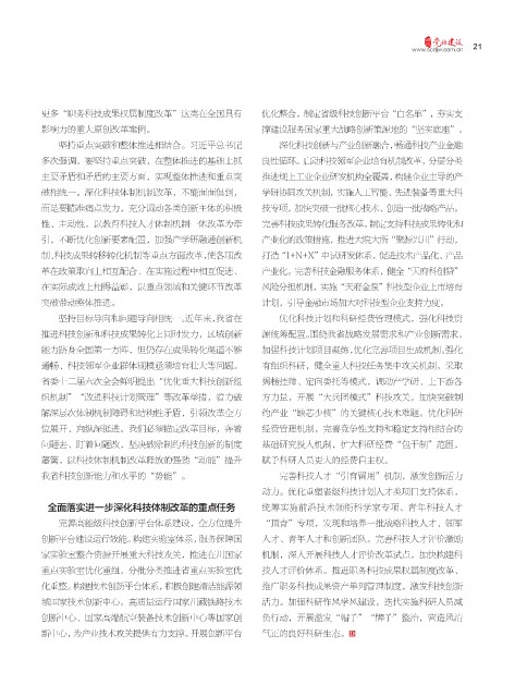 解深层次体制机制障碍和结构性矛盾,引领改革全方 约产业“缺芯少核”的关键核心技术难题。优化科研