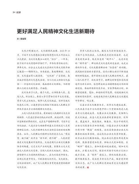 及人民。新征程上,要深入学习贯彻习近平文化思想, 创新的有利条件,让越来越多的人民群众在文化建设