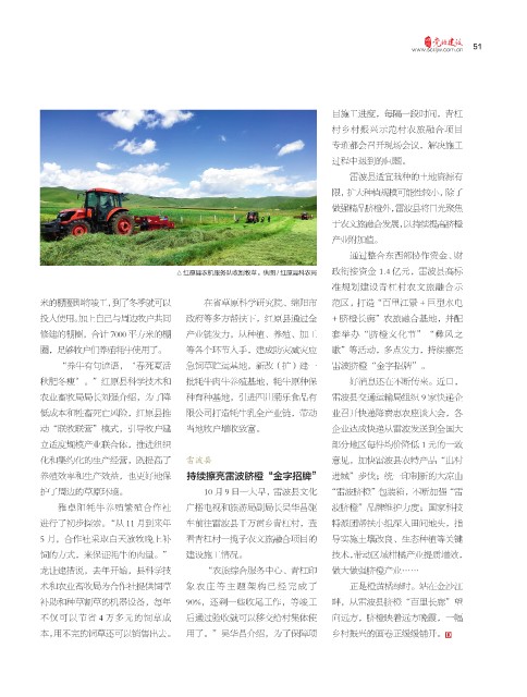 5 月,合作社采取白天放牧晚上补 看青杠村一揽子农文旅融合项目的 导实施土壤改良、生态种植等关键