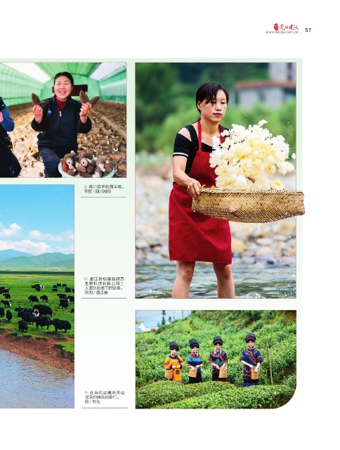 57 www.scdjw.com.cn 青川县羊肚菌丰收。 供图 / 四川港投 通江县裕德源润耳 生物科技有限公司工 人清洗刚摘下的银耳。 供图 / 通江组 在马边县福来茶山 采茶的彝族姑娘们。 图/何为