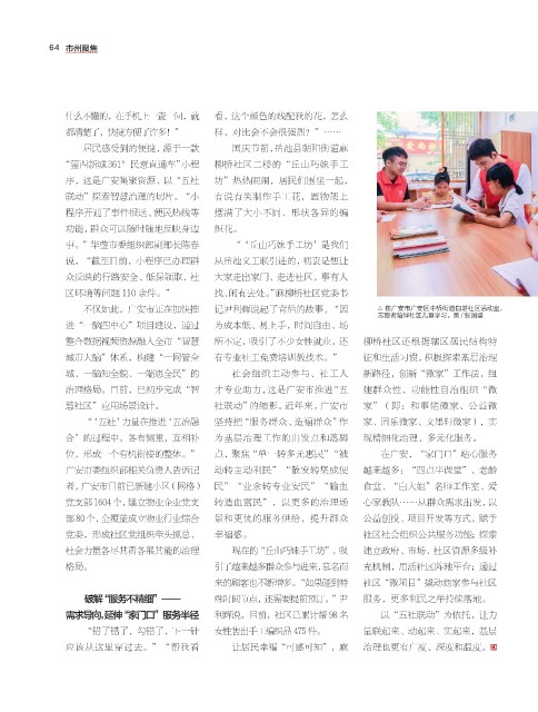 区环境等问题 110 余件。” 找、闲有去处。”麻柳桥社区党委书